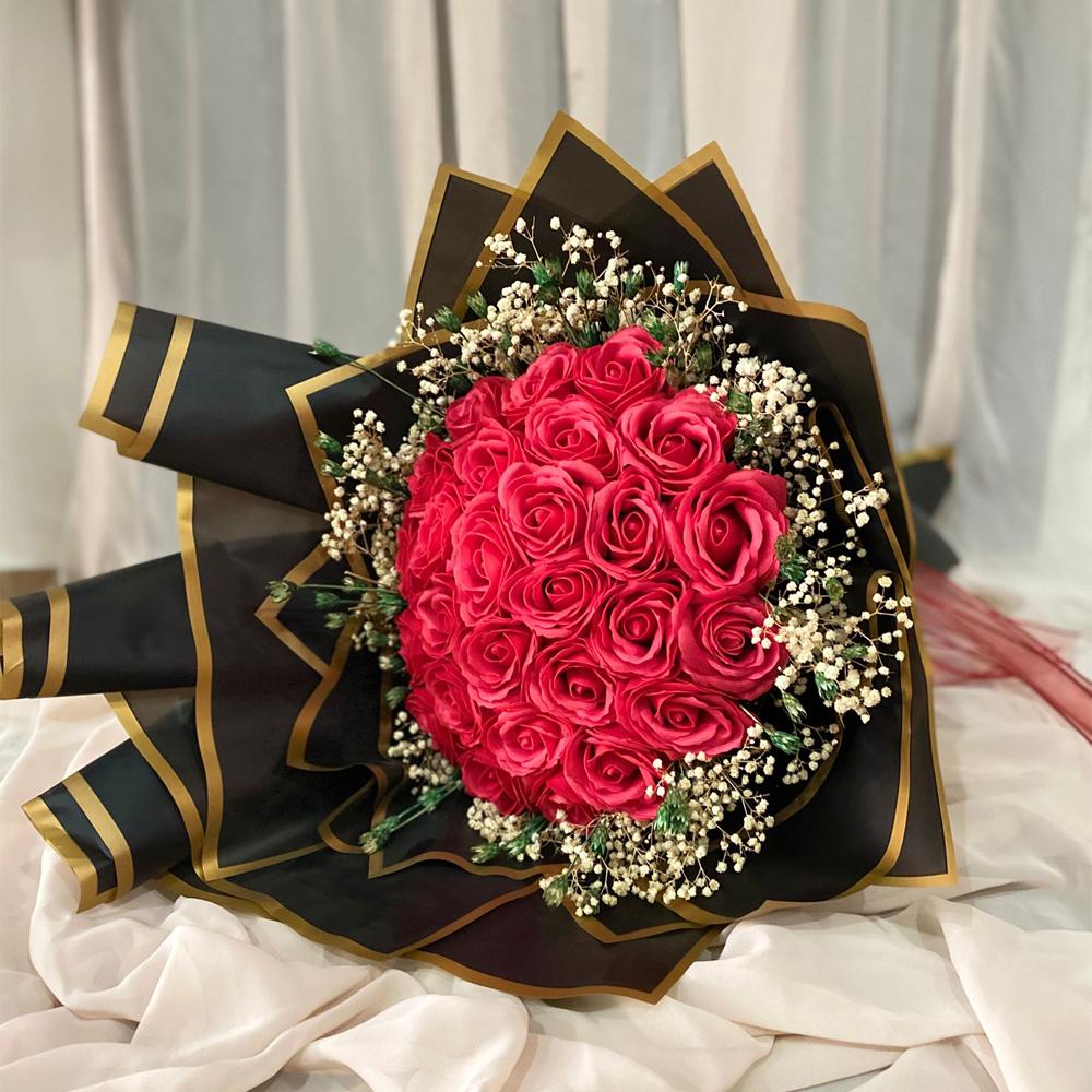 Islak Kırmızı Gül Kız İsteme Buketi, zarafeti ve romantizmi bir araya getiren özel bir çiçek aranjmanıdır. Kırmızı güllerin anlamı, tutku ve aşkı simgelerken, ıslak gül efekti çiçeklerin tazeliğini ve canlılığını uzun süre korur. Bu buket, kız isteme gibi özel ve duygusal bir anı daha da anlamlı kılar. Şıklığı ve zarafetiyle öne çıkan bu aranjman, sevdiklerinize olan duygularınızı en güzel şekilde ifade etmenize yardımcı olur. Hem modern hem de geleneksel bir dokunuşla, unutulmaz anlar yaratmak için mükemmel bir tercihtir.